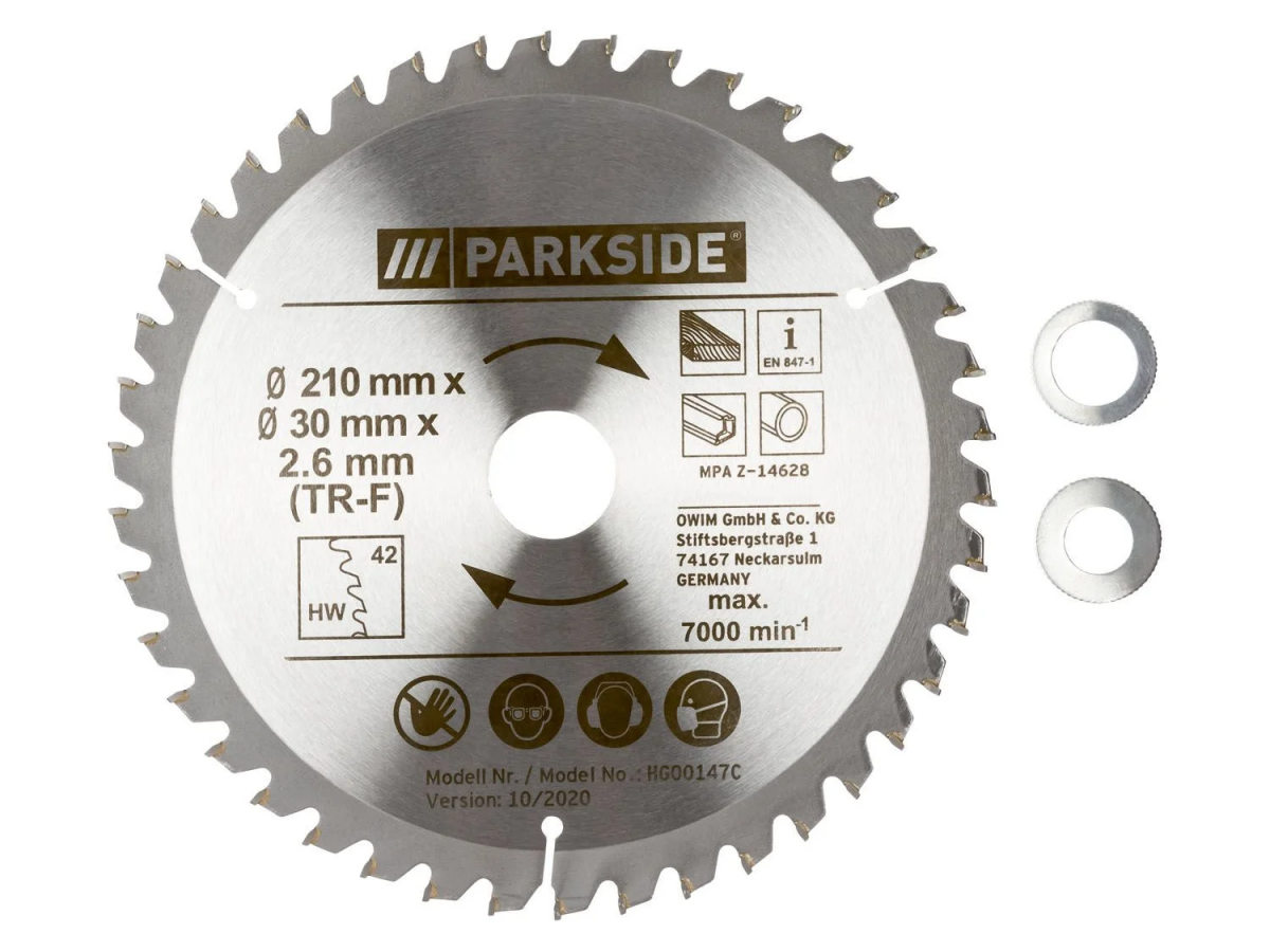 پارکساید آلمان قطر 210 سورخ وسط 30 ضخامت 2.6 میل 42 دندانه دور 7000 آر پی ام مناسب برای چوب - ام دی اف و آلومینیوم