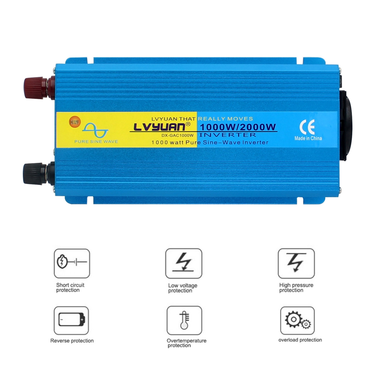 1000 وات واقعی با شکل موج سینوسی با تمام حفاظتها قابل استفاده برای وسایل موتور دار و یخچال و فریزر و غیره ساخت چین سینوسی کامل و قابل استفاده برای تمامی وسایل از جمله وسایل موتور دار و لوازم حساس 1000 وات خروجی لحظه ای تا 2000 وات در صورت استفاده دائم برای وات بالا حتما برای اتصال باتری به اینورتور از سیم قوی استفاده کنید دارای تمامی حفاظتها از جمله اتصال کوتاه و اتصال برعکس به باتری البته توصیه میشود از اتصال برعکس به باتری و اتصال کوتاه خودداری شود