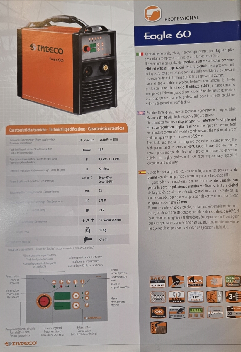 دستگاه برش پلاسما سه فاز ایگل 60 اینتکو اصل ساخت ایتالیا استوک انبار به همراه تورچ اصلی