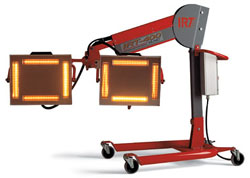 دستگاه پخت رنگ  مادون قرمز لیزری 12 کیلو وات ساخت سوئد برند  هدسن سه فاز دارای روکش طلا برای صفحات رفلکتور 4 عدد لامپ دو کیلو وات و 4 عدد لامپ 1 کیلو وات دو کاست پرتابل تنضیم فاصله با لیزر و تنظیمم دما ی سطح  از دور کیفت پخت رنگ  مشابه رنگ  کوره
