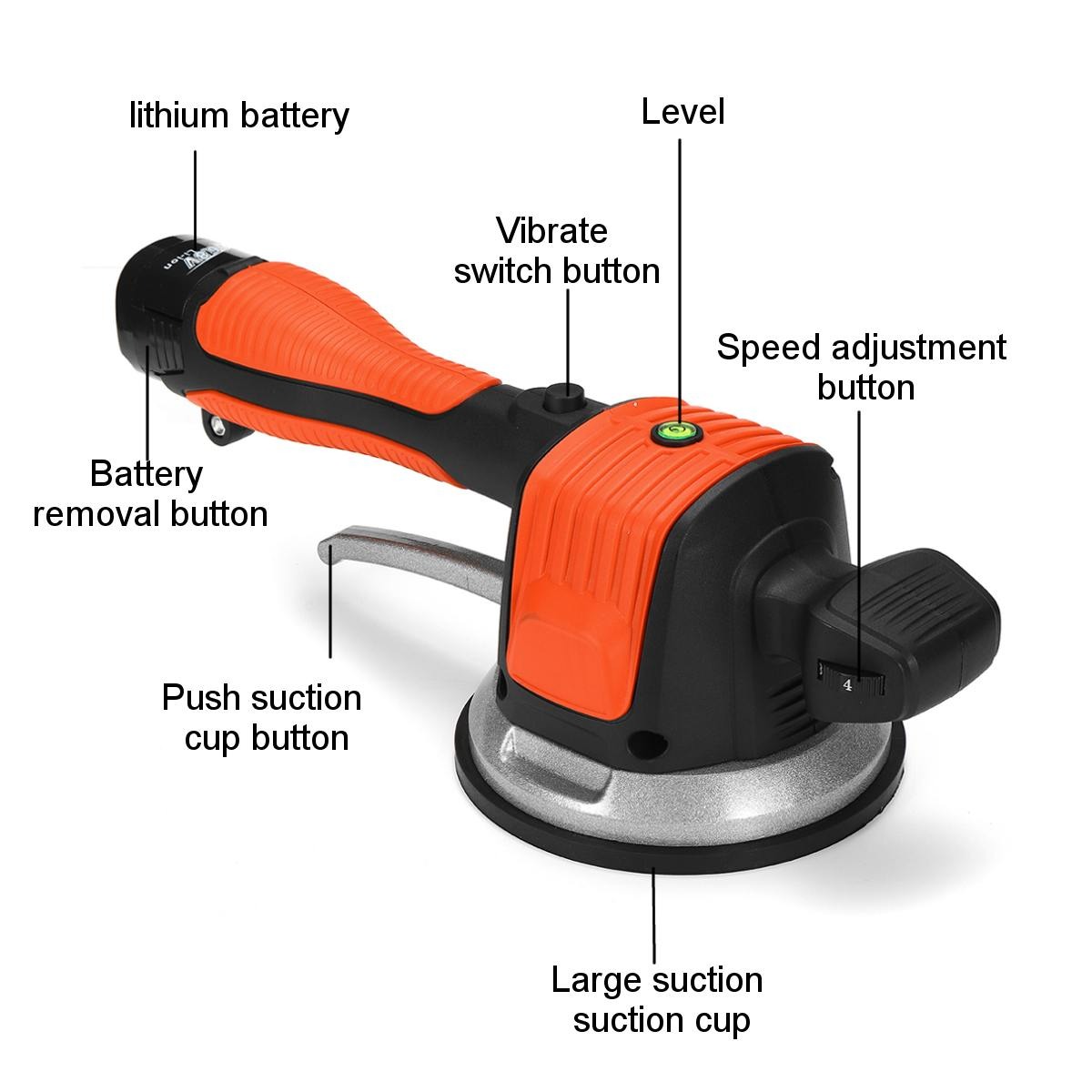 چکش برقی نصب سرامیک دستگاه شارژی ویبره نصب کاشی و سرامیک دارای باتری زاپاس 6 سرعته دارای تراز قابلیت کار با کاشی و سرامیک تا وزن 100 کیلو گرم فرکانس تا 72000 ضربه در دقیقه برای جذب کامل ذرات سیمان و چسب معروفترین برند دستگاه نصب سرامیک و سنگ در چین ساخت چین برای حفظ سلامت نصاب بهتر است دستگاه روی سرامیک قفل و در هنگام ویبراسیون دست از روی آن برداشته شود چرا که در دراز مدت برگشت ویبره بر روی سلامت مفاصل مضر است.
